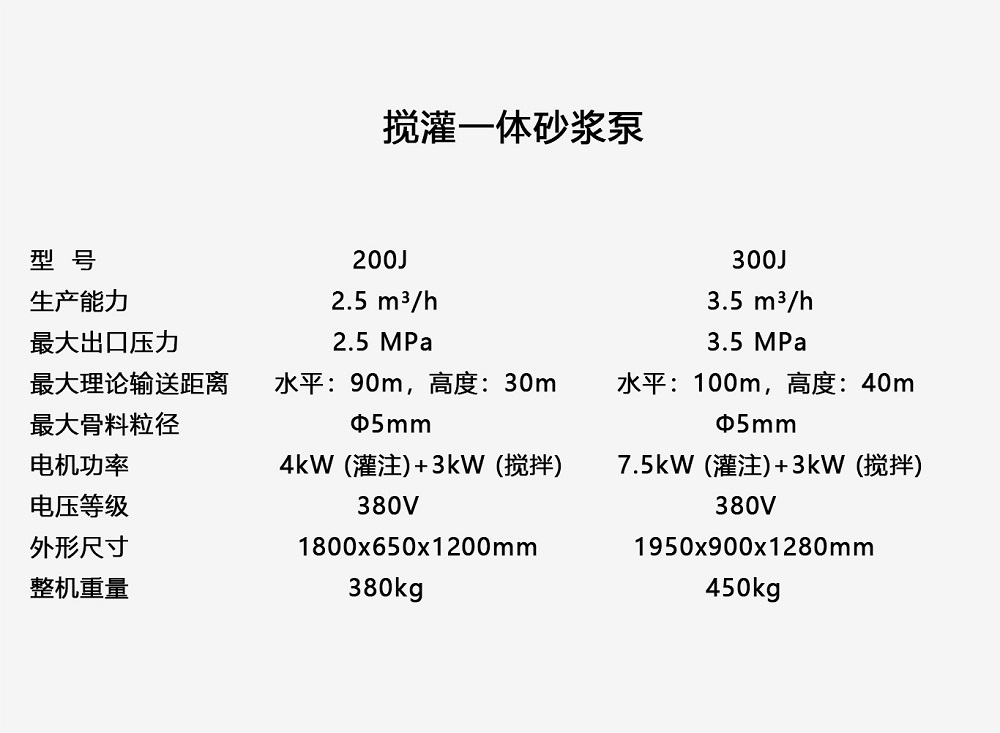 ●电机功率: 4kW(灌注)+3kW(搅拌) 7.5kW(灌注)+3kW(搅拌)