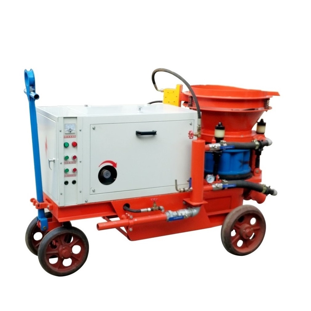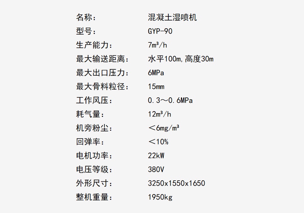 GYP-90系列液压湿喷机是利用液压泵产生的推力,使两个油缸往复交替运动,将稠密流物料由输送管道送至混流管处,经压缩空气形成稀薄流通过管道送至喷头处,在喷头处加入一定比例的速凝剂,直接喷射到受喷面上的一种机、电、液三合一的机械设备,被广泛应用于公路、铁路、隧道、水电站等工程建设中。